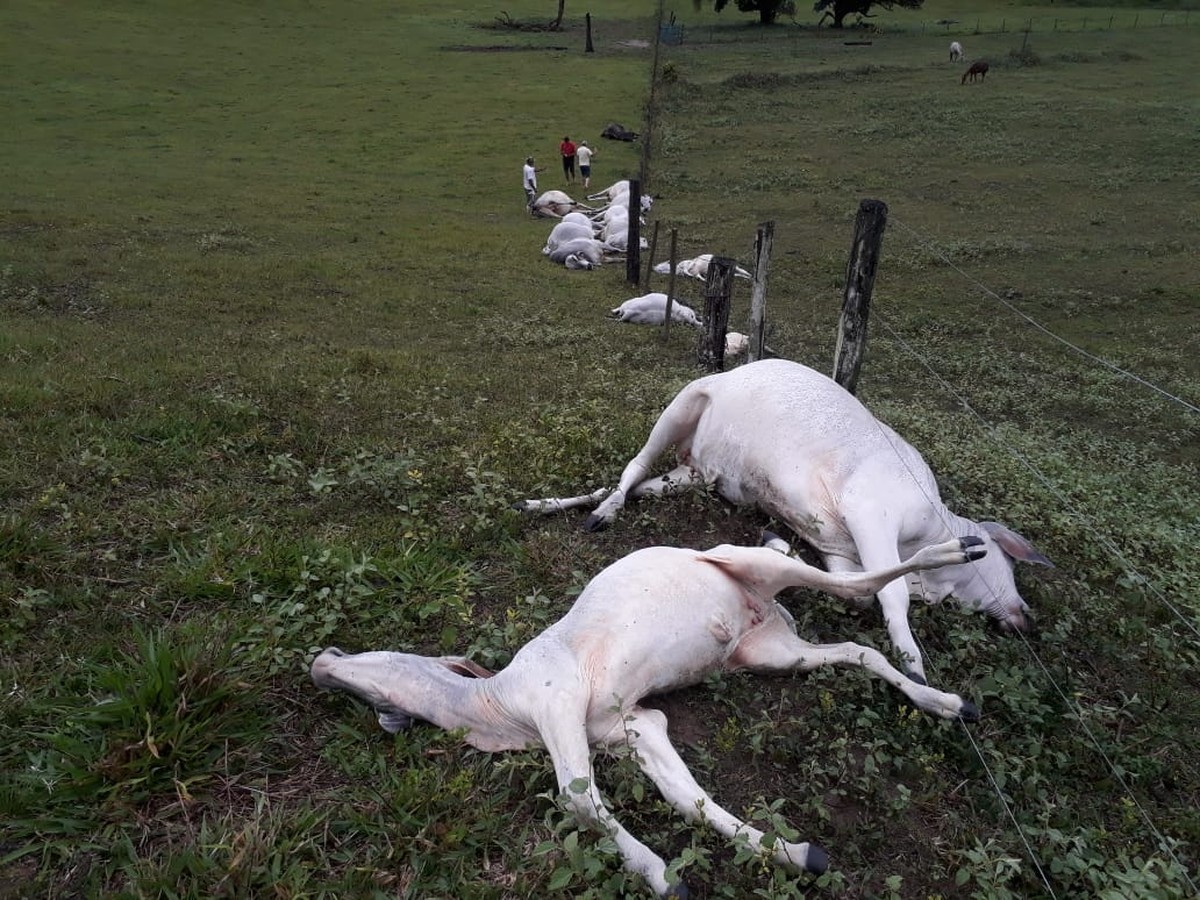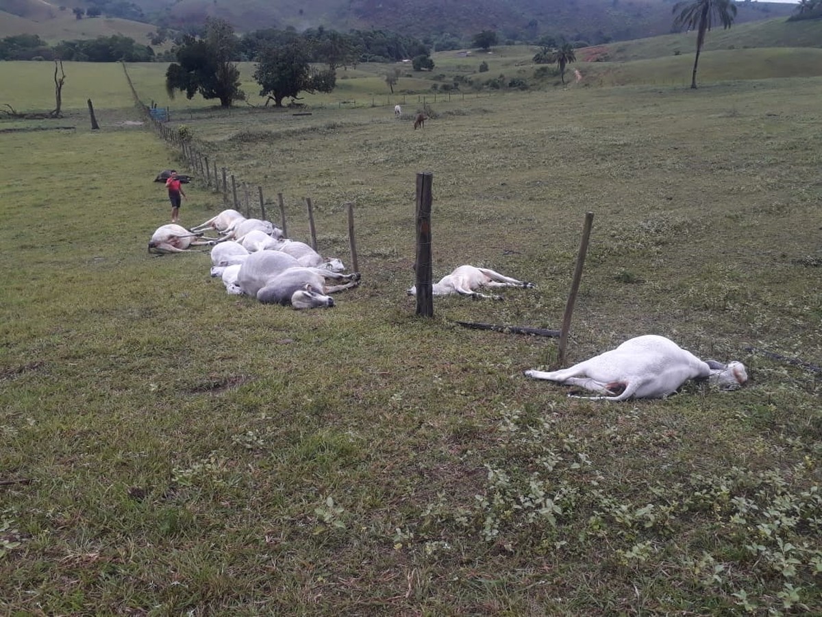 Dezesseis animais morreram após um raio atingir uma fazenda na zona rural do município de Itabela, no sul da Bahia. Segundo informações do dono da fazenda Conjunto Limoeiro, o caso aconteceu na tarde de sábado (4).